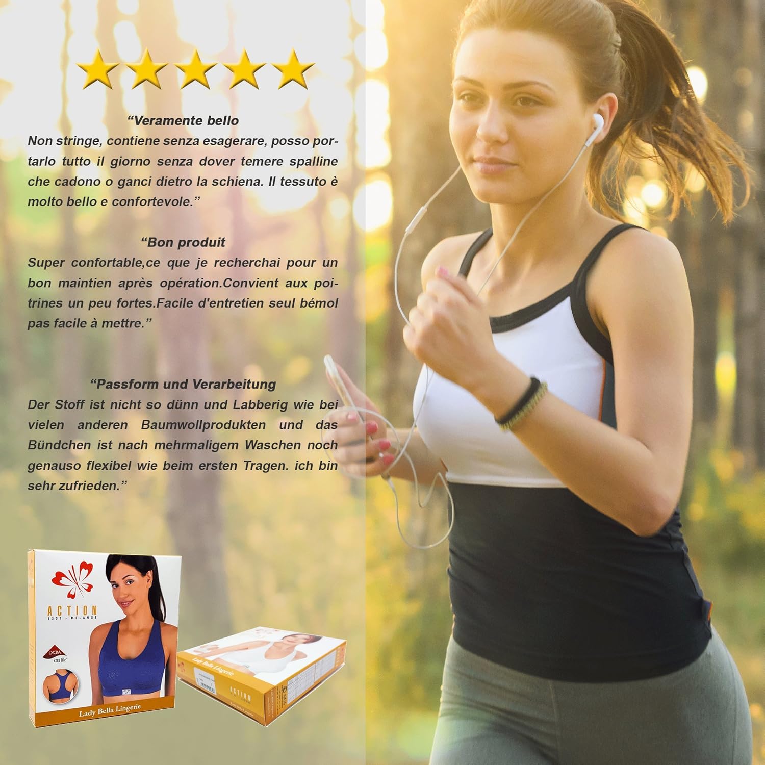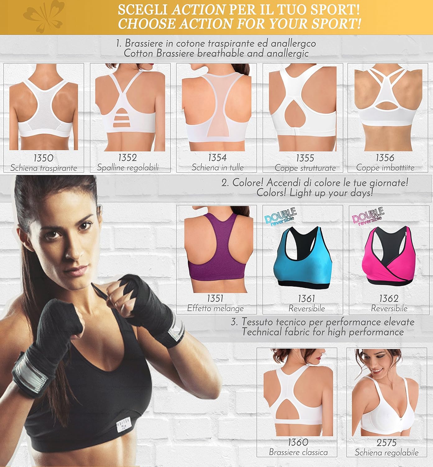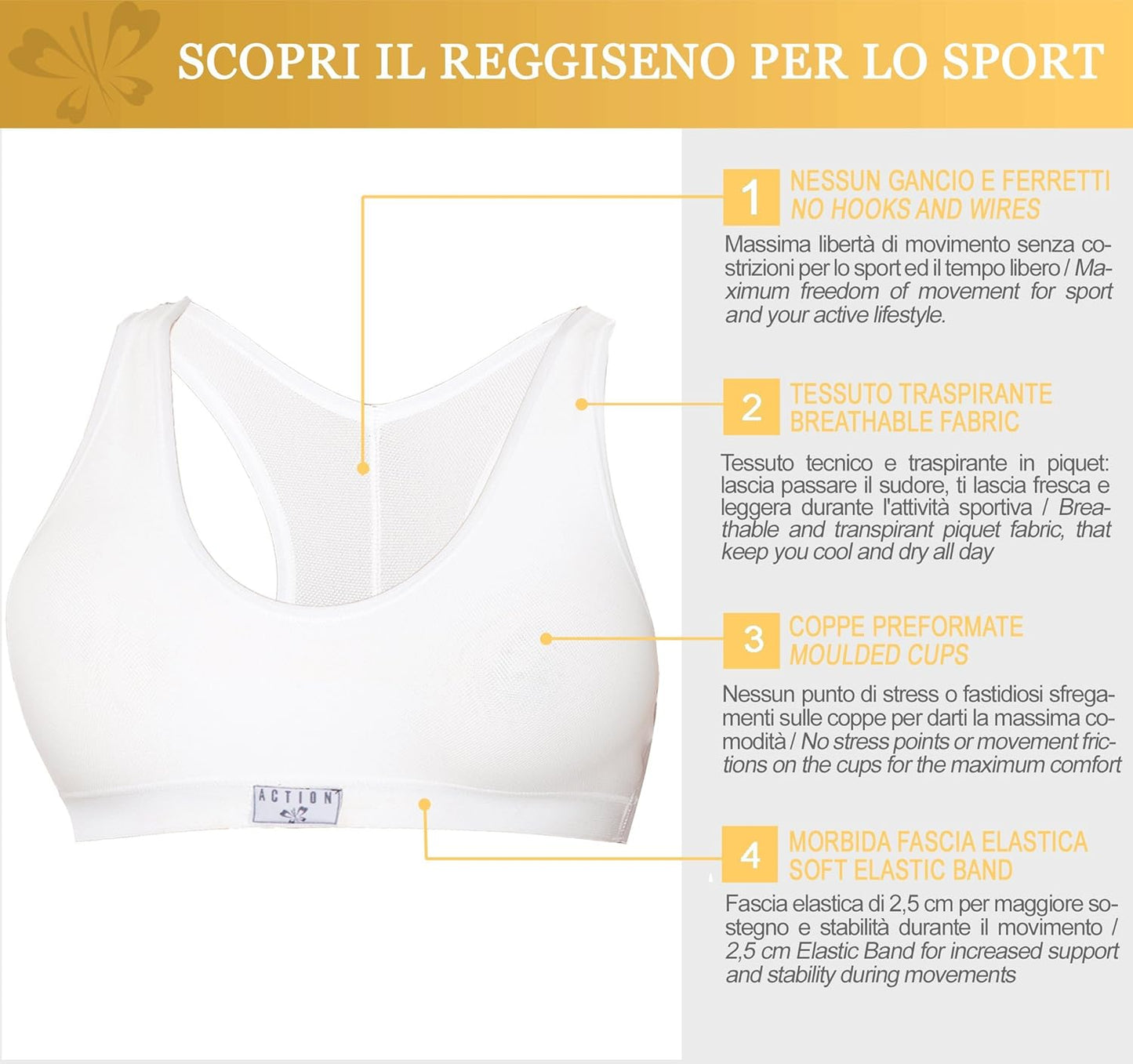 Action P1350 Reggiseno Sportivo Cotone Donna Brassiere Senza Ganci Schiena Tessuto Traspirante