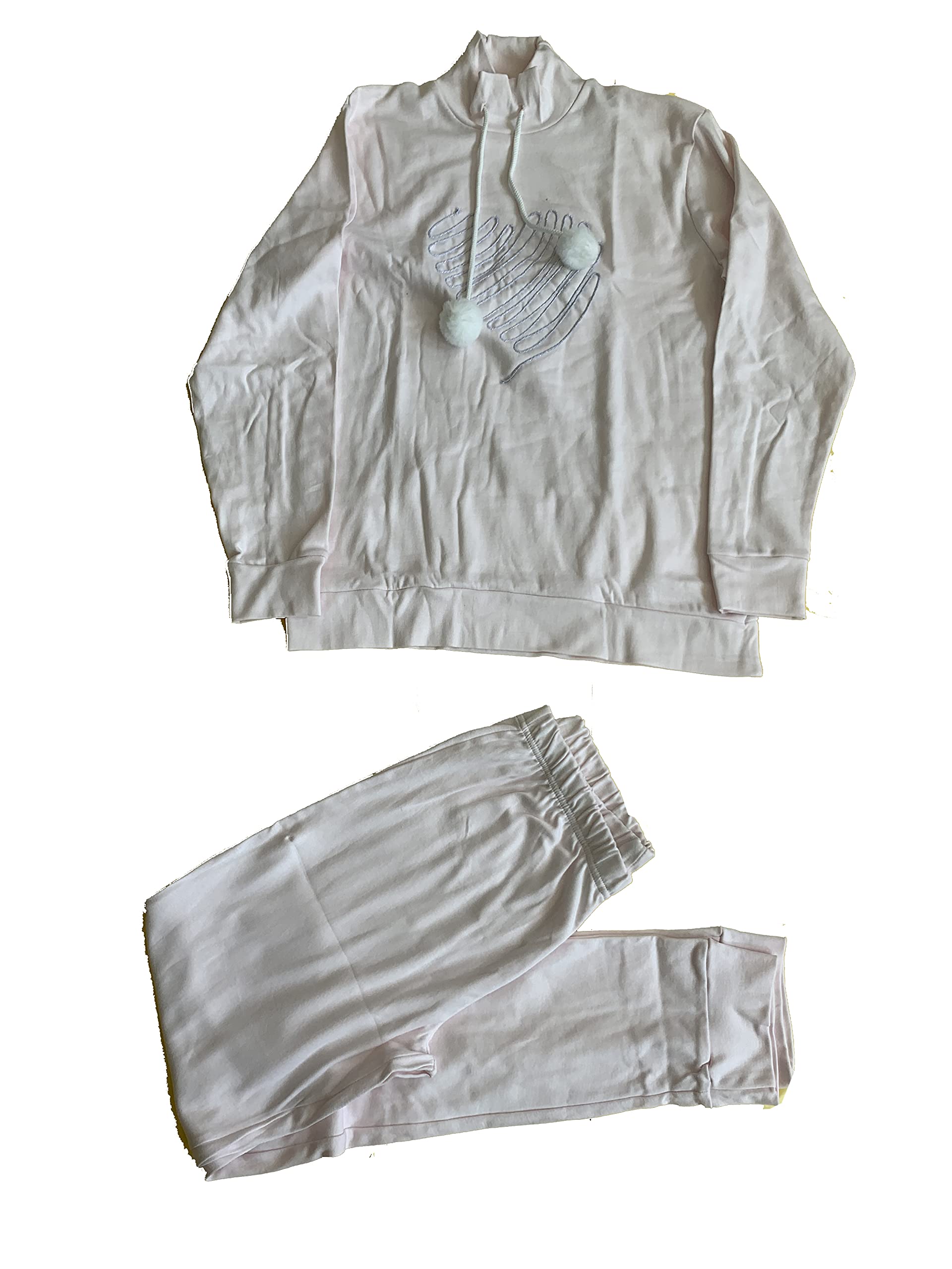 Il pigiama da donna nell'inserzione, acquistabile nella nostra vetrina online, è uno degli ultimi articoli della nuova collezione invernale di Oronero che, con l'articolo OD1015 lancia il pigiama in caldo cotone in due pezzi, a manica lunga, con collo alto a lupetto. La maglia prevede il collo a lupetto, con dei pon pon che escono dal colletto stesso, mentre vediamo stampato un cuore creato con una linea unica continua. Il pigiama è in tinta unita, unico colore, sia grigio medio melange che rosa chiaro e le taglie vanno dalla small alla large. Sia il pantalone che la maglia hanno dei polsini alle caviglie e alle maniche. Il prodotto è al 100% in cotone.