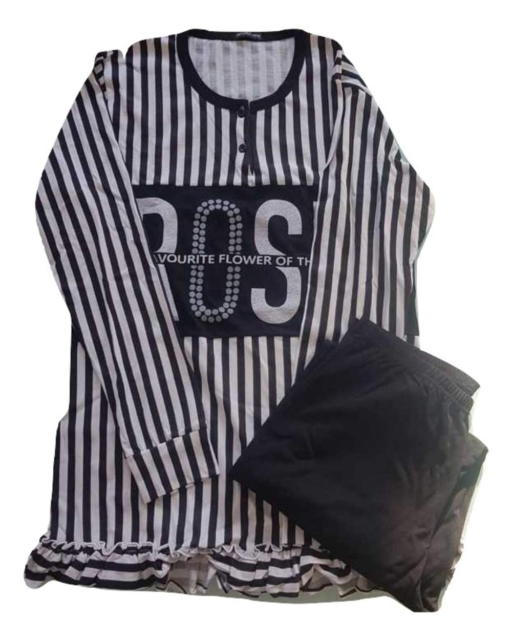 Pigiama Donna Due Pezzi Lungo Serafino Cotone con Volant Art. P1208