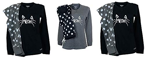 Pigiama Donna Invernale Lungo in Caldo Cotone Nacshua Gatto Clementina Nero (Nero, M)
